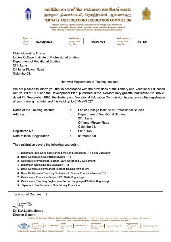 The Institute of Professional Studies (IPS) formerly known as the Department of Vocational Studies celebrated 40 years of service in 2021. The IPS has a separate Board of Management which deals with issues related solely to the Institute like the appointment of staff, finance related matters and introducing courses. Day-to-day administration is carried out by a team of staff members headed by the Chief Operating Officer who reports to the College Principal. One of the primary objectives was to serve the community and to provide skilled and trained personnel for the development of Sri Lanka and as such the courses were geared towards achieving this goal.